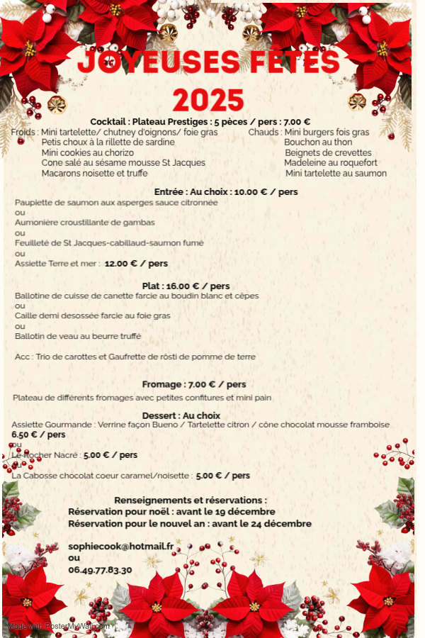 Contactez-nous dès aujourd’hui pour réserver votre expérience culinaire unique: 06 49 77 83 30
